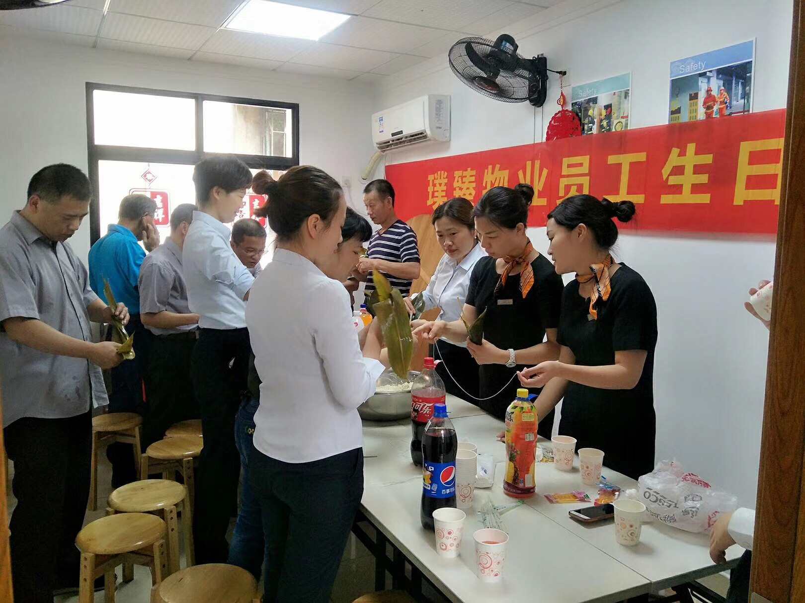 6月14日,普瑞物业公司泊富国际广场项目部在端午佳节来临之际,在员工食堂举办了“浓情端午,粽享未来”手工包粽暨二季员工生日会活动。在活动现场大家不仅学会了包粽子还共同为过生日的同事送上最真挚的祝福,在吹蜡烛、切蛋糕的快乐氛围中大家卸下了工作重负,体验到传统节日的韵味,更增进彼此之间的感情交流,促进各部门之间的团结与友谊。