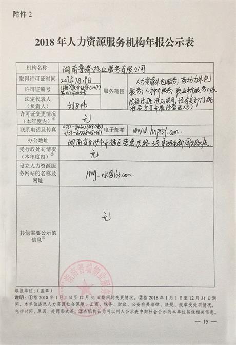 公司2018年人力资源服务机构年报公示